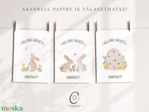 Húsvéti képeslap, nyuszis üdvözlőlapok, tavaszi ajándékkísérő szett 3 db