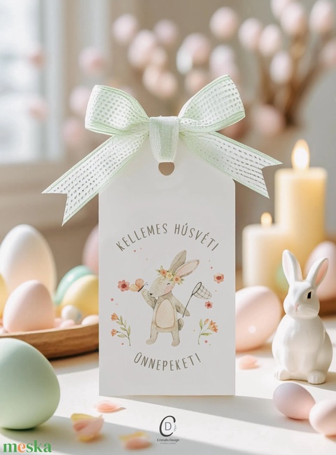 Húsvéti ajándékkísérő, nyuszis ajándékátadó címke szett 6 db