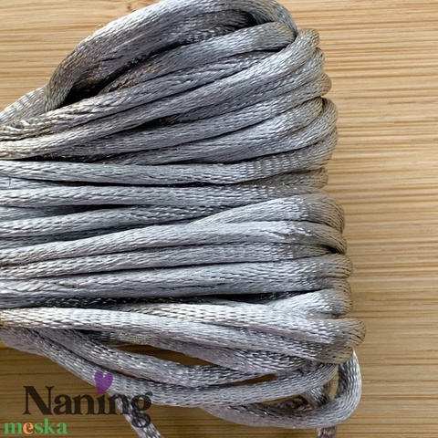 5 méter szatén selyemzsinór - ezüst - 2mm (60ft/m)