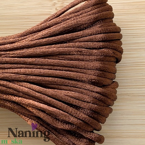 5 méter szatén selyemzsinór - bársonybarna - 2mm (60ft/m)