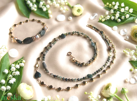 Zöld Erdők Varázsa Szíves ékszerszett díszcsomagolással Indiai achát ékszer szett