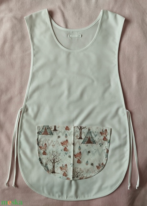 Női fehér lapköpeny, Róka 🦊 mintás zsebbel , ovis , munkaruha