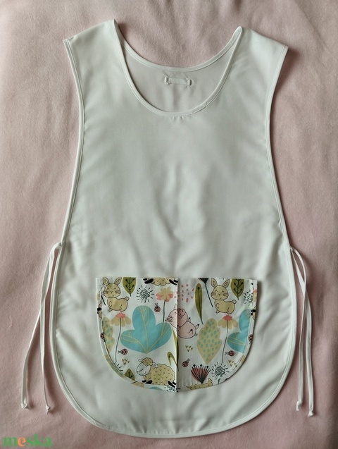 Női fehér lapköpeny, Bárány 🐑, Nyuszi 🐰, Malac 🐷 mintás zsebbel , ovis , munkaruha