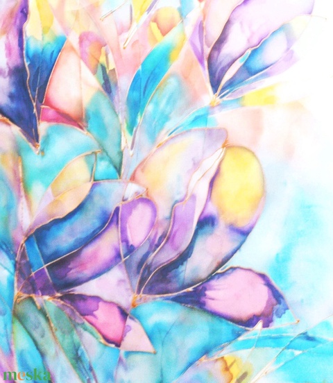 Kézzel festett, művészi és hordható sálak tiszta selyemből. Időtálló érték, természetesen.