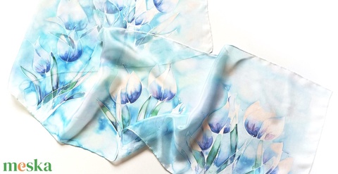 Kézzel festett, művészi és hordható sálak tiszta selyemből. Időtálló érték, természetesen.