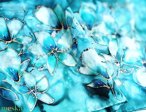 Kézzel festett, művészi és hordható sálak tiszta selyemből. Időtálló érték, természetesen.