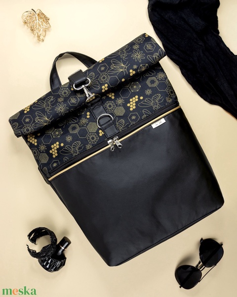 Fekete - arany, méhecskés roll top táska
