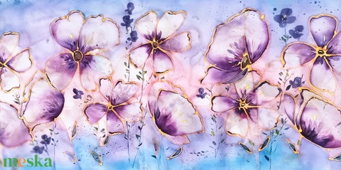 Kézzel festett, művészi és hordható sálak tiszta selyemből. Időtálló érték, természetesen.