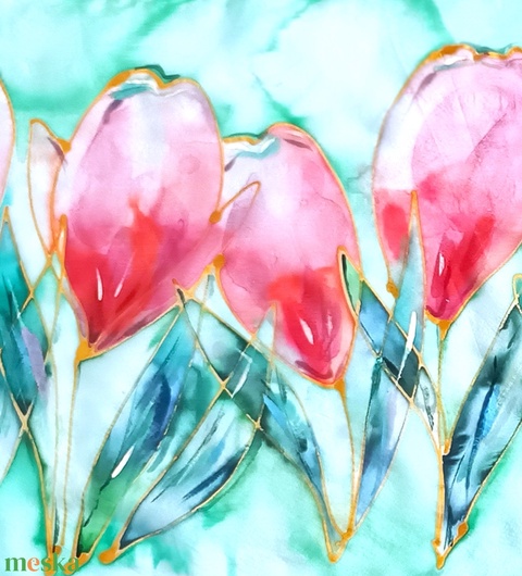 Kézzel festett, művészi és hordható sálak tiszta selyemből. Időtálló érték, természetesen.