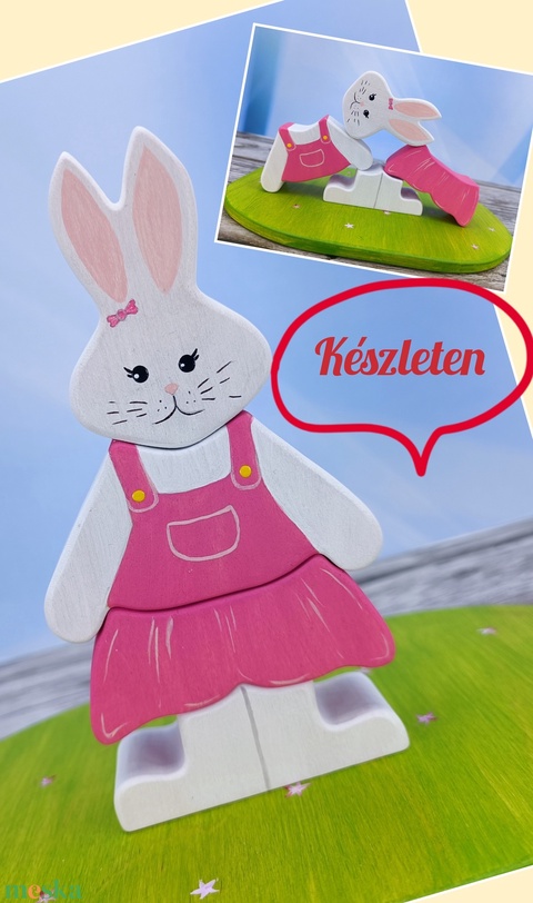 Nyuszilányos húsvéti fa kirakó – kézzel készült fejlesztő játék gyerekeknek