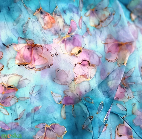 Kézzel festett, művészi és hordható sálak tiszta selyemből. Időtálló érték, természetesen.