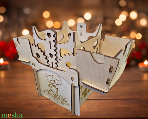 Fa ajándékdoboz bonbonhoz vagy csokoládéhoz – különleges nyíló meglepetés doboz