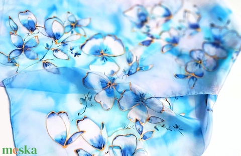 Kézzel festett, művészi és hordható sálak tiszta selyemből. Időtálló érték, természetesen.