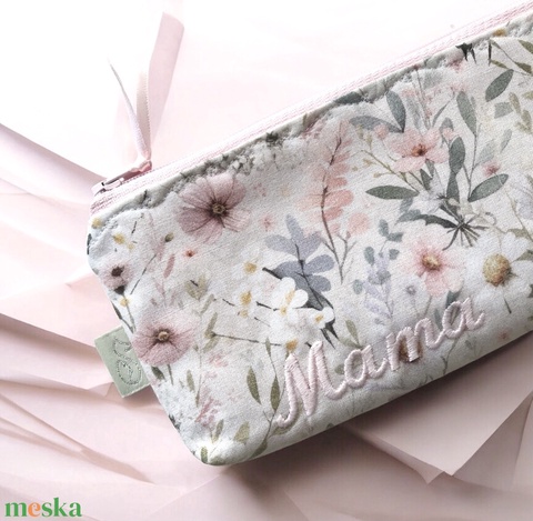 Virágoskert mintás tolltartó neszesszer Mama hímzéssel Anyák napjára