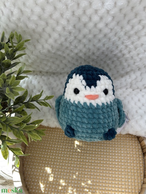 Horgolt pingvin (türkiz-sötét türkiz)