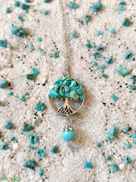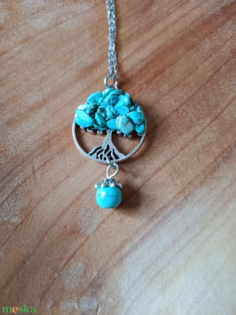 Életfa medál howlit türkiz ásvánnyal orvosi acél lánccal