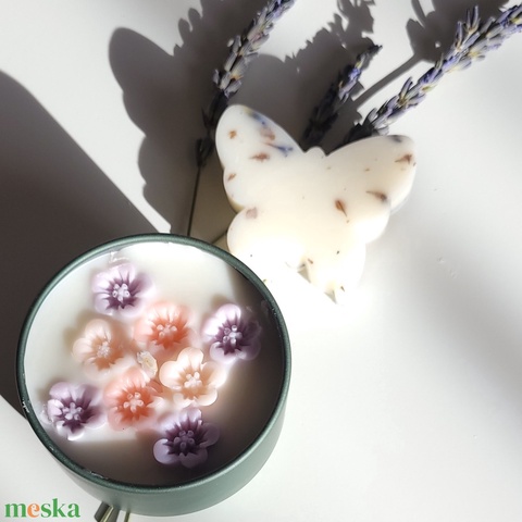 Francia vanília és levendula pici virágos illatgyertya