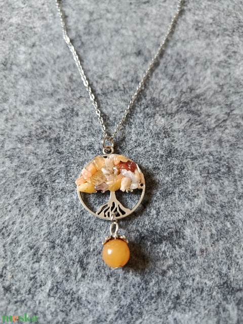 Életfa medál jáde ásvánnyal orvosi acél lánccal