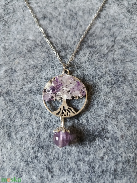 Életfa medál ametiszt ásvánnyal orvosi acél lánccal