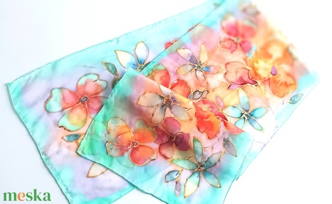 Kézzel festett, művészi és hordható sálak tiszta selyemből. Időtálló érték, természetesen.