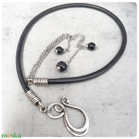 Lasszó nyaklánc 5 mm vastag bőr, orvosi fémmel és ónixszal