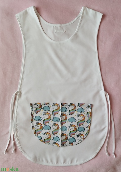 Női fehér lapköpeny, Unikornis 🦄 mintás zsebbel , ovis , munkaruha