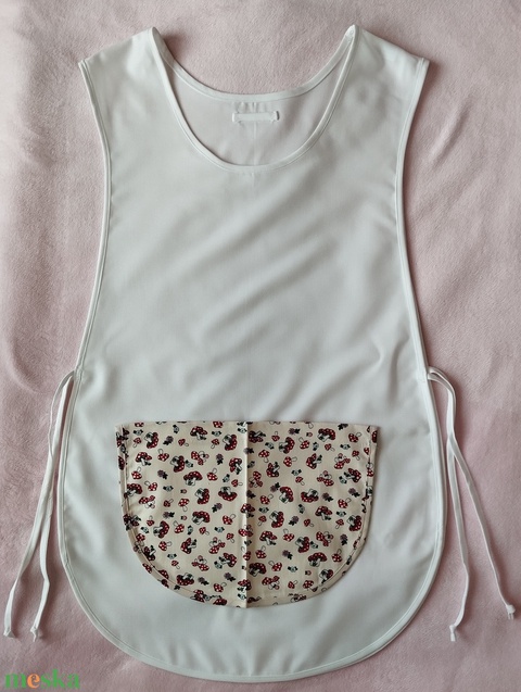 Női fehér lapköpeny, Gomba 🍄 mintás zsebbel , ovis , munkaruha