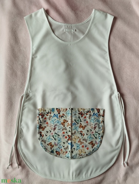 Női fehér lapköpeny, Pillangó 🦋 mintás zsebbel , ovis , munkaruha