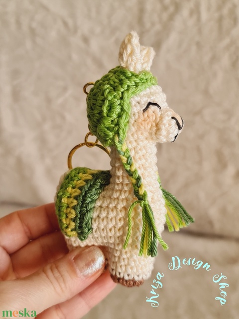 Kézműves horgolt kabalafigurás kulcstartó - Mini láma (Greg)