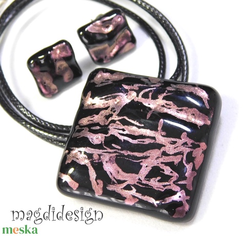 Rózsaszín fekete galaxis üvegékszer szett, nyaklánc, stiftes fülbevaló