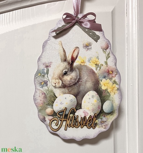 Húsvéti ajtókopogtató - nyuszis tavaszi ajtódísz
