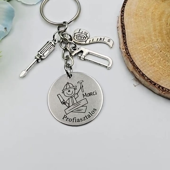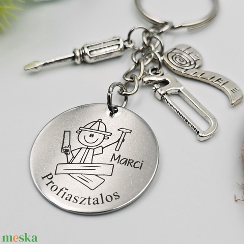 Asztalosnak ajándék - asztalos kulcstartó grafikával, egyedi névvel, felirattal