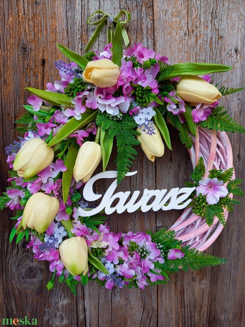 - Anyag/Összetevő vessző alap, selyemvirág, fa