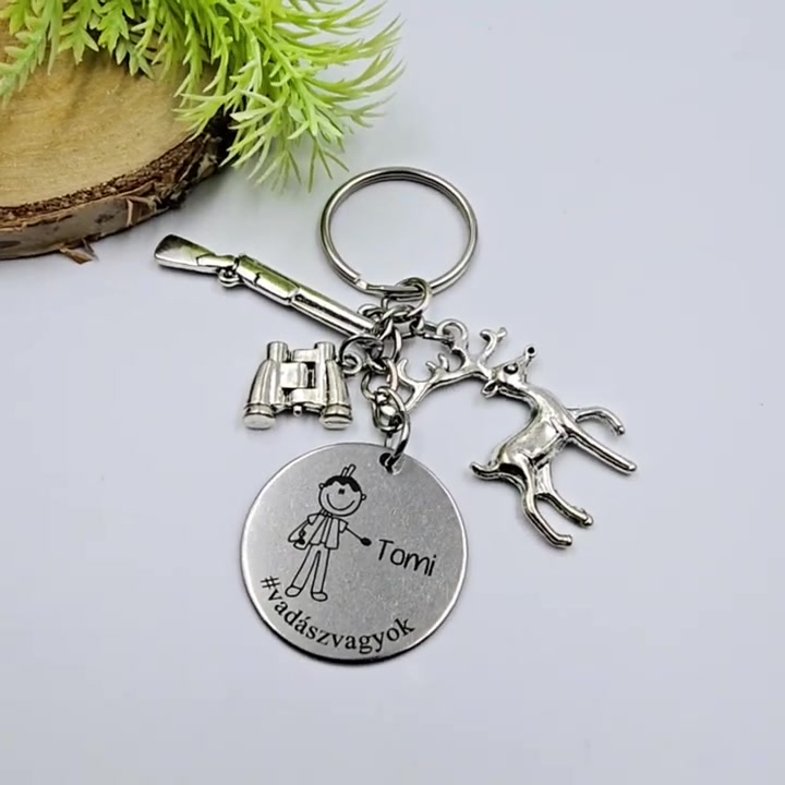 Vadásznak ajándék - vadász kulcstartó grafikával, egyedi névvel, felirattal