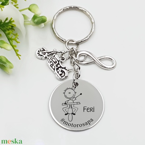 Motorosnak ajándék - motoros kulcstartó grafikával, egyedi névvel, felirattal