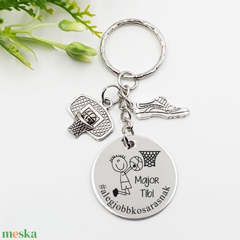 Kosárlabdázónak ajándék - kosaras kulcstartó grafikával, egyedi névvel, felirattal