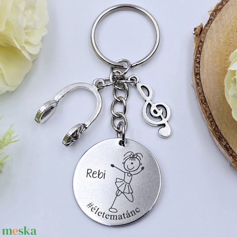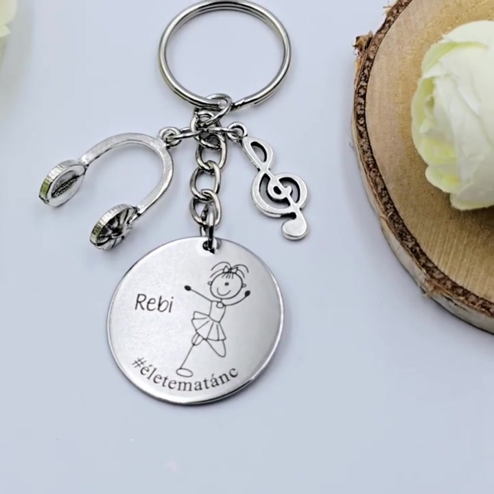 Táncosnőnek ajándék - táncosnő kulcstartó grafikával, egyedi névvel, felirattal