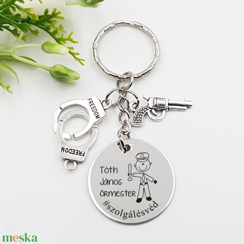 Rendőrnek ajándék - rendőr kulcstartó grafikával, egyedi névvel, felirattal