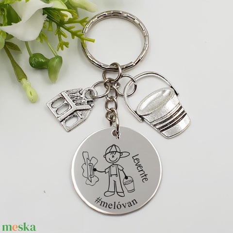 Kőművesnek ajándék - kőműves kulcstartó grafikával, egyedi névvel, felirattal