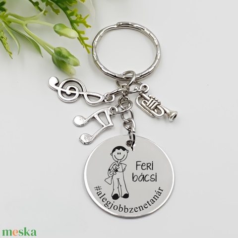 Zenésznek ajándék - zenész kulcstartó grafikával, egyedi névvel, felirattal