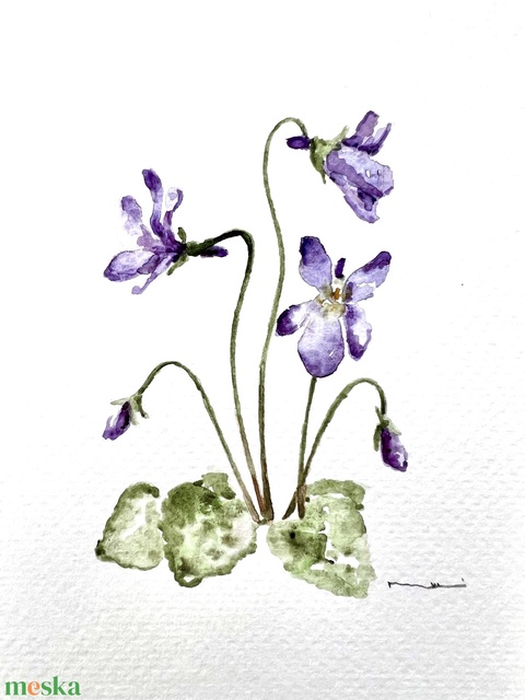 Eredeti akvarell ibolya virág festmény