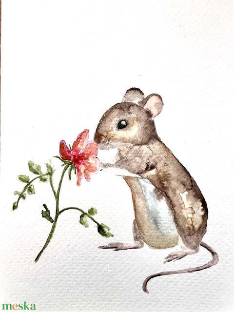Eredeti akvarell festmény, egér virággal
