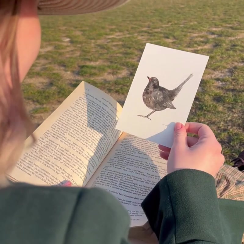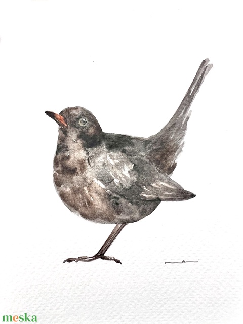 Eredeti akvarell feketerigó madár festmény