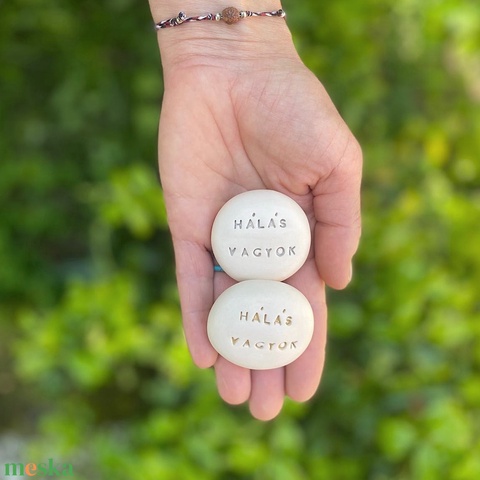 HÁLÁS VAGYOK - Kerámia Varázskavics üzenettel, motivációs felirattal