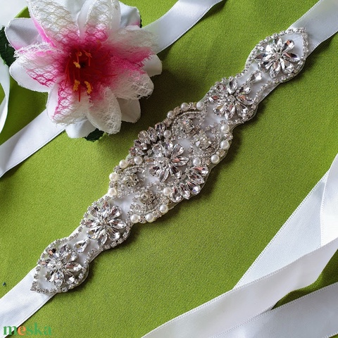 ESKÜVŐ MÖV23 – Strasszos menyasszonyi öv 25x5cm-es választható szatén szalagon