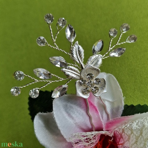 ESKÜVŐ HAD253 - Ezüst színű virágos ágacskás strasszköves hajtú hajdísz