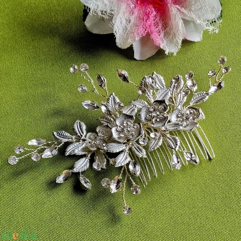 ESKÜVŐ HAD254 - Ezüst színű virágos ágacskás strasszköves hajfésű, hajdísz