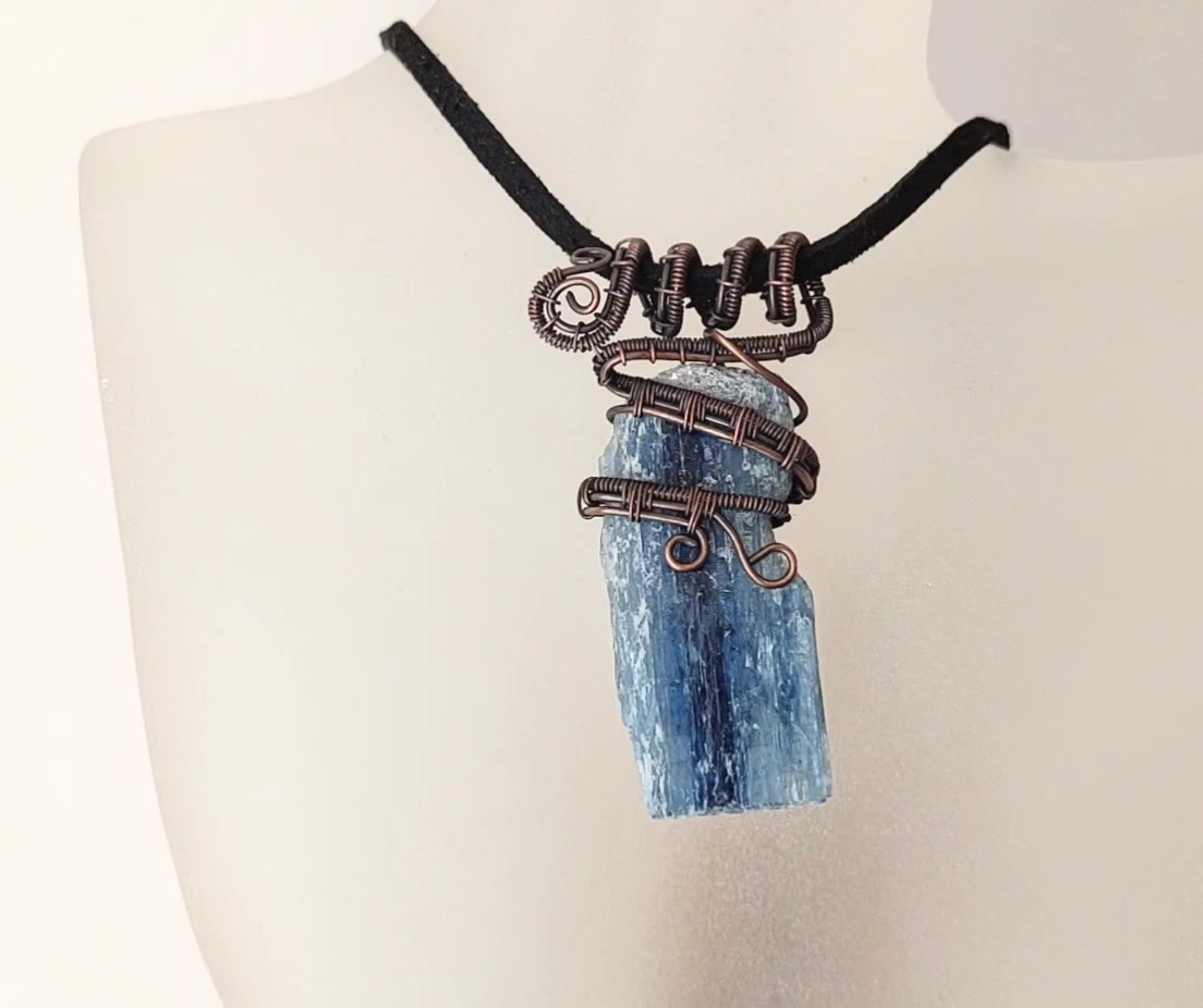 Vörösréz nyaklánc nyers kianit ásvány kővel