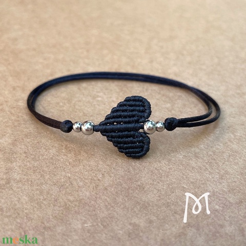 Fekete makramézott szív medál karkötő