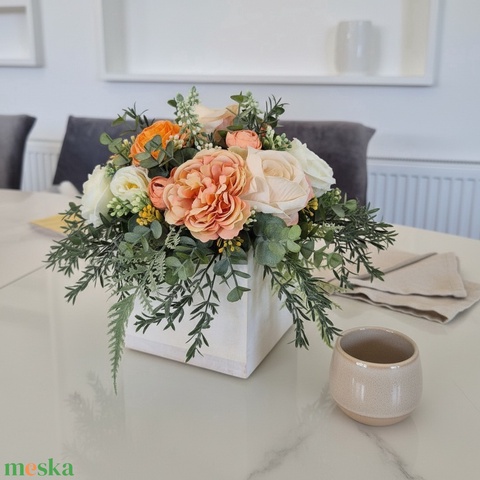 Virágos asztaldísz – elegáns KENDEKOR dekoráció fa dobozban